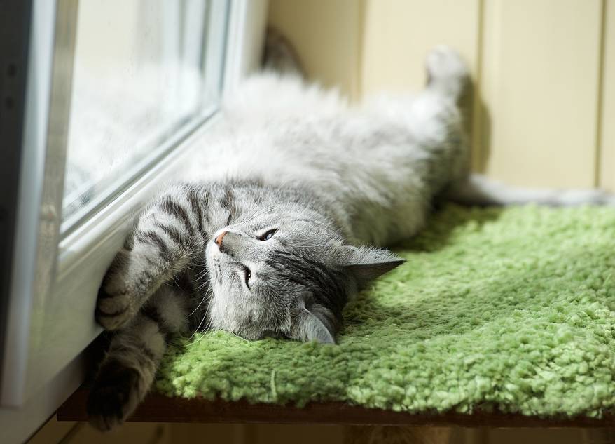 Because cat sweat glands aren't that effective, cats have other ways of cooling off. They bathe themselves, because when their saliva evaporates it cools them down—kind of like taking a lukewarm bath on a hot day. Cats also like to rest in cool places. Spreading their bodies out on a cool surface — like a tiled floor or an empty bathtub — keeps them comfortable. Many cats also shed their undercoats in the warmer months. If your cat seems to be shedding more than usual, you can help by grooming her regularly. It's a dual benefit: grooming your cat is a bonding activity, and you'll cut down on the hair around your house.